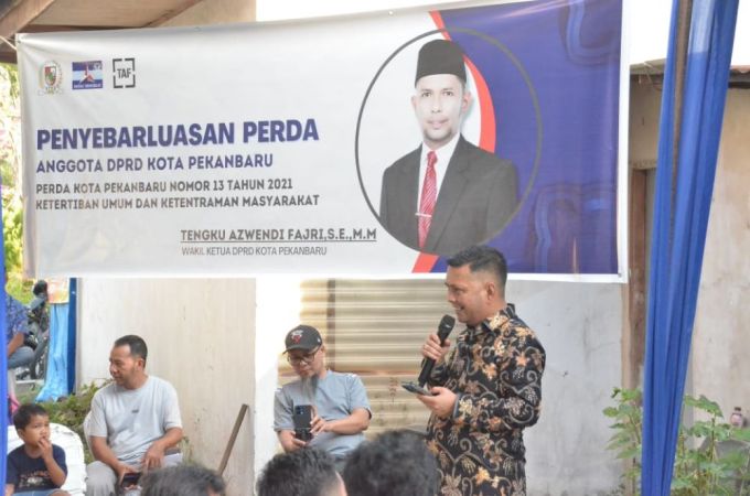Sudutkotanews.com, Pekanbaru - Wakil Ketua DPRD Pekanbaru Tengku Azwendi Fajri menyelenggarakan Penyebarluasan Perda di Jalan Kusuma Kelurahan Simpang Tiga Kecamatan Bukit Raya pada Kamis (27/11). Agenda ini dihadiri segenap masyarakat setempat beserta perangkat RT RW.